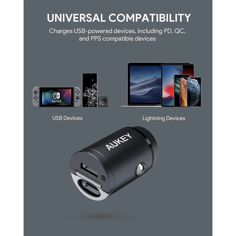 Aukey CC-A4 Dual Port USB-C 30W PD Car Charger - Black